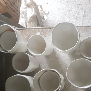 I make these cast porcelain tumblers as a nod to the old style glass I remember my grandfather using. The dimples round the base settle into your hand when you hold it.